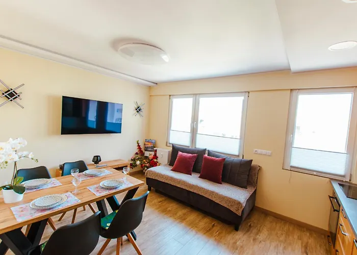 Located merely 1 km from Aquarium "Oceanarium", the 40 m^2 Vacationclub - Gierczak 15 Apartament 10 Kolobrzeg is nearly a 25-minute walk from a top family-friendly place like Ukryta Kraina Amusement Center.